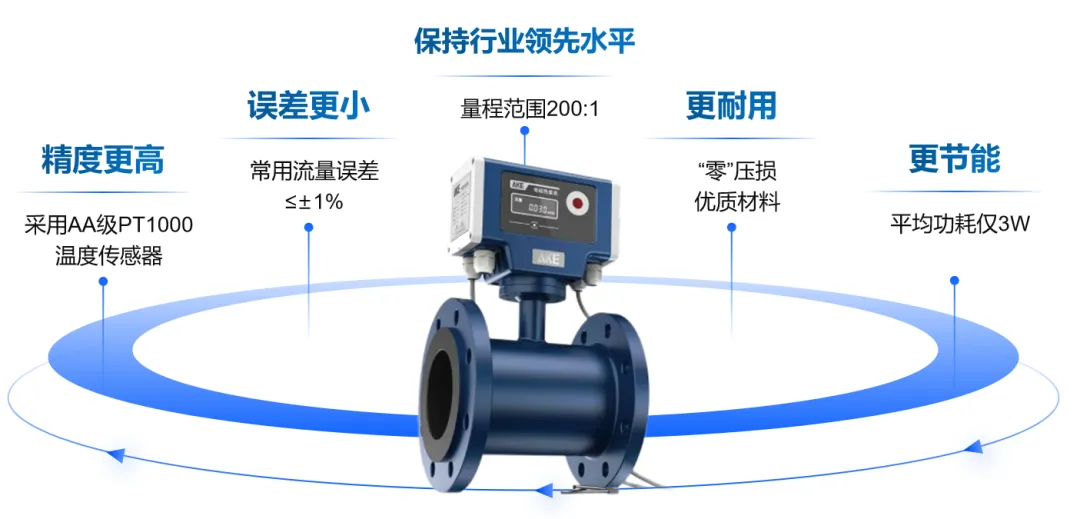 创新采用aa级精度的pt1000温度传感器,先进的流量检测算法技术,具备精度高、误差小、功耗低等特点,使用时还可配合查询面板、移动端、软件平台实现三显三控,一键高效运维。