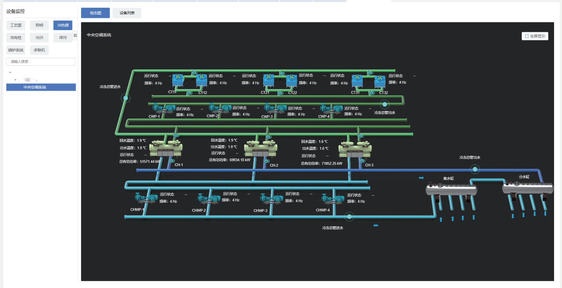 基于多重反馈调节机制,建立多变量、多耦合非线性模型,以负荷预测为依据,以实时能效最高为目标,融合变轨定压差、风水联调、分布式定温差、冷却水温自适应调节等先进调节技术,实现中央空调系统的动态寻优,大大提升园区空调系统能效。