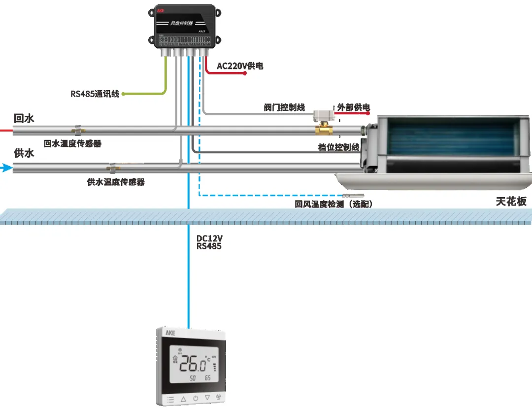 此外,末端安装的艾科风盘控制器采用行业创新的风水联调专利技术,精准调控空调系统风速和水流量,避免风机盘管供回水温差过低,减少风机的运行能耗、整体提升空调系统运行能效。
