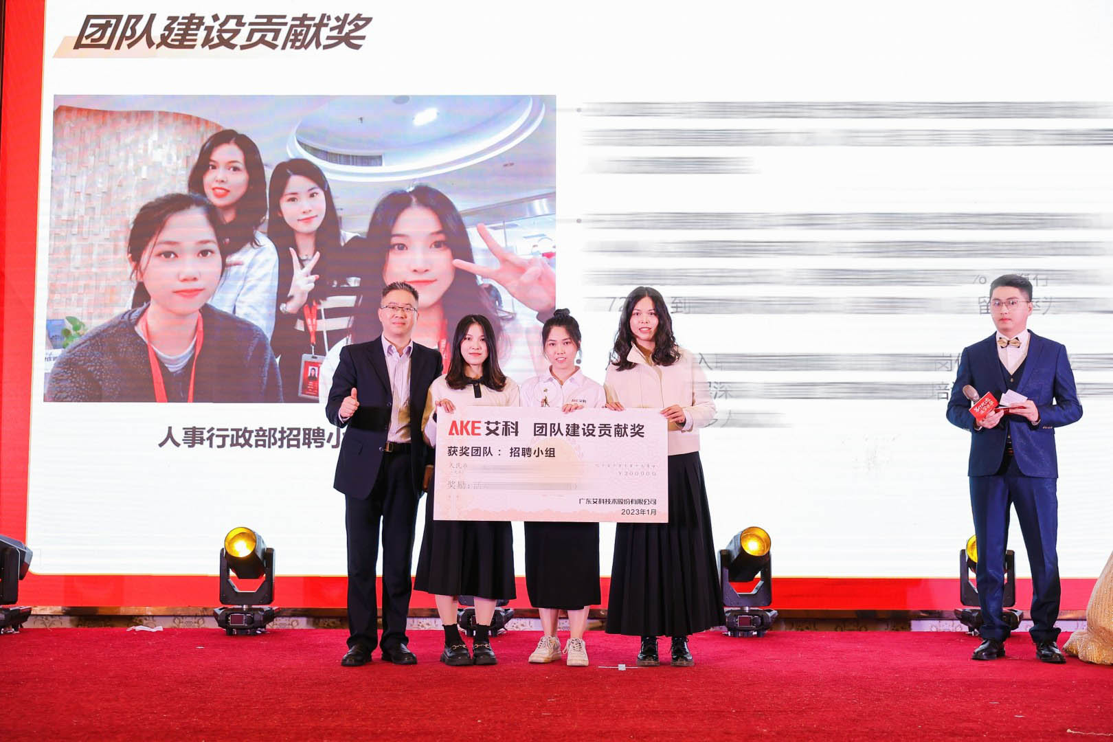 人心齐,泰山移。每一次成功都离不开团队齐心协力的合作。为发扬团队精神,会议还对过去一年为公司作出突出贡献的招聘团队、研发团队与项目团队进行表彰奖励,他们分别获得“团队建设贡献奖”、“2022年度技术攻关突破奖”与“创新业务开拓奖”。