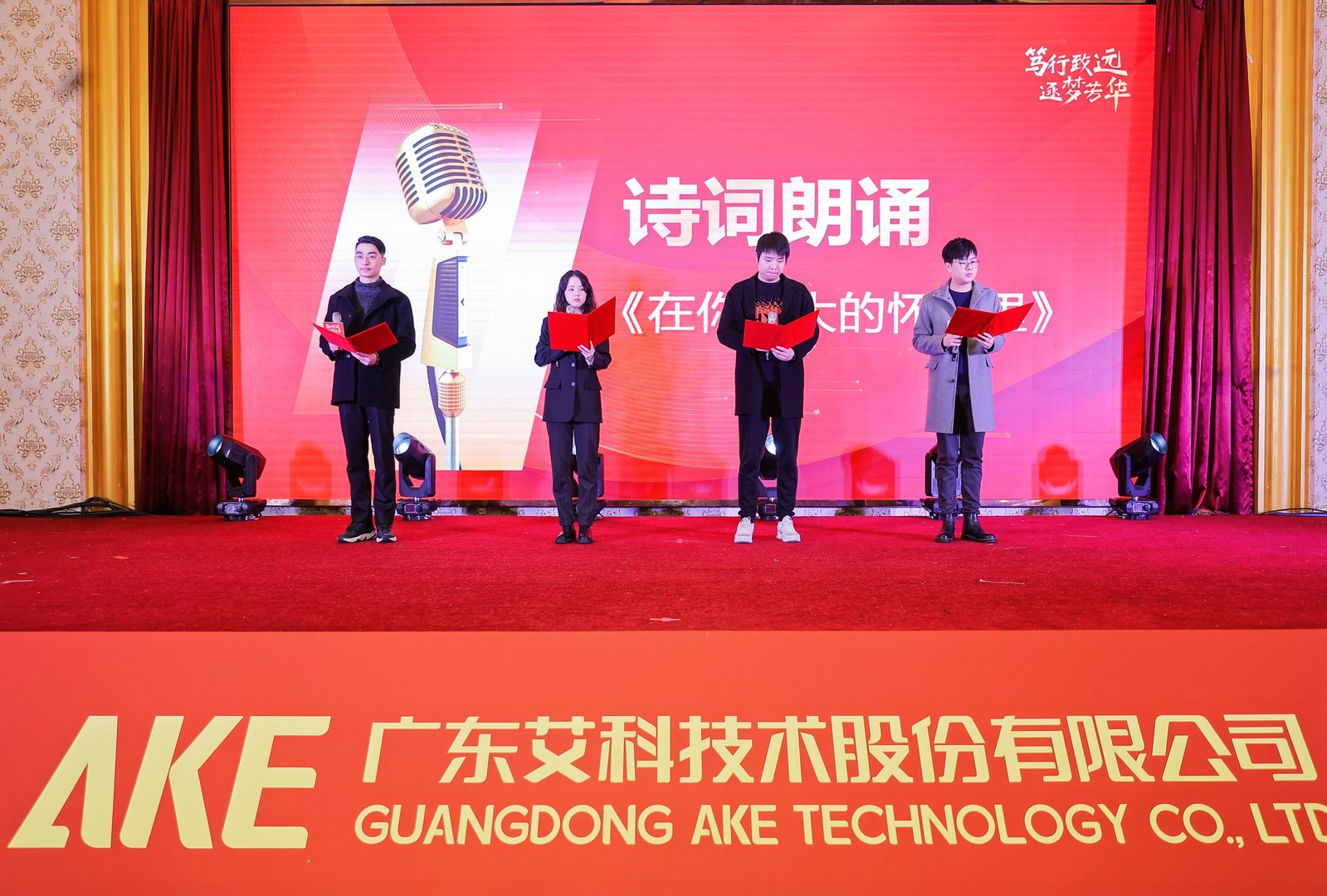 艾科员工卧虎藏龙,才艺表演精彩不断,歌舞盛宴、诗朗诵、小品轮番登场,点燃气氛,赢得满堂喝彩。