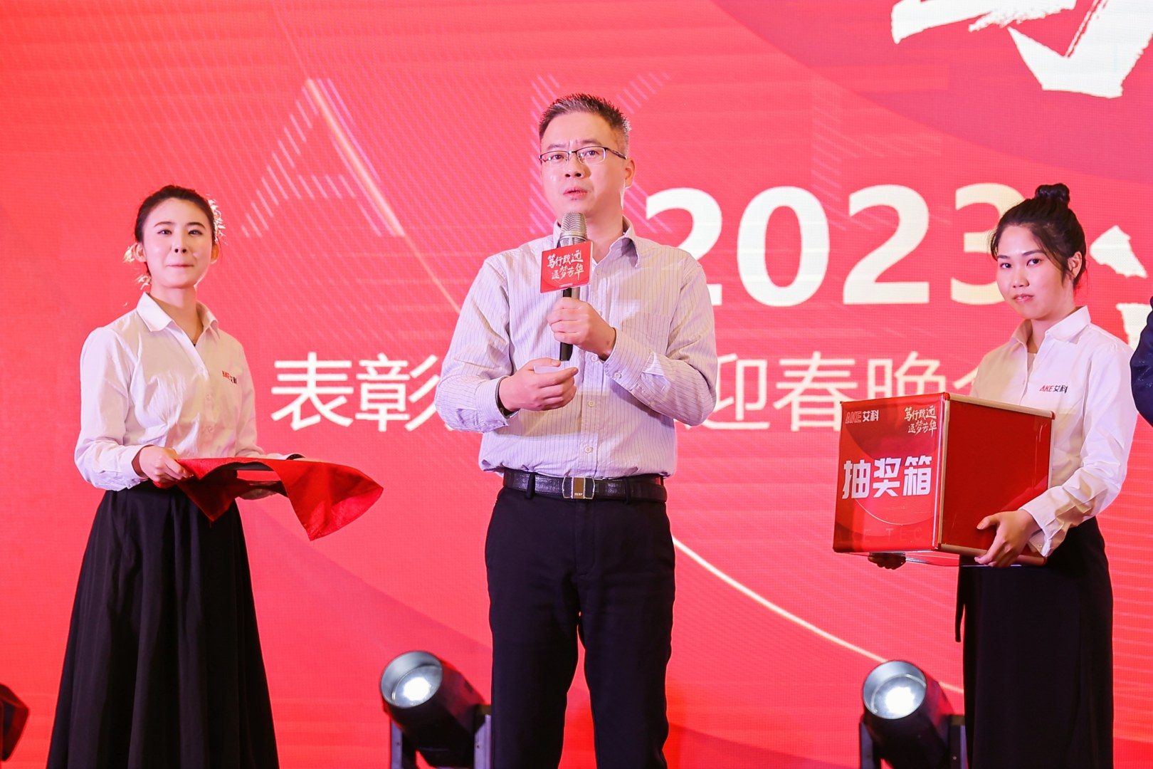 晚会在热切地期待中拉开序幕。一众领导到台上祝酒,为艾科未来更好的发展共同举杯。精彩的表演随即登场。