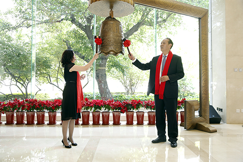 在主持人的引导下,控股股东曹蔚女士代表艾科技术敲响公司成功挂牌上市的宝钟。祝愿艾科技术在新三板的资本平台上,日新月异,蒸蒸日上,佳绩斐然,再创辉煌。
