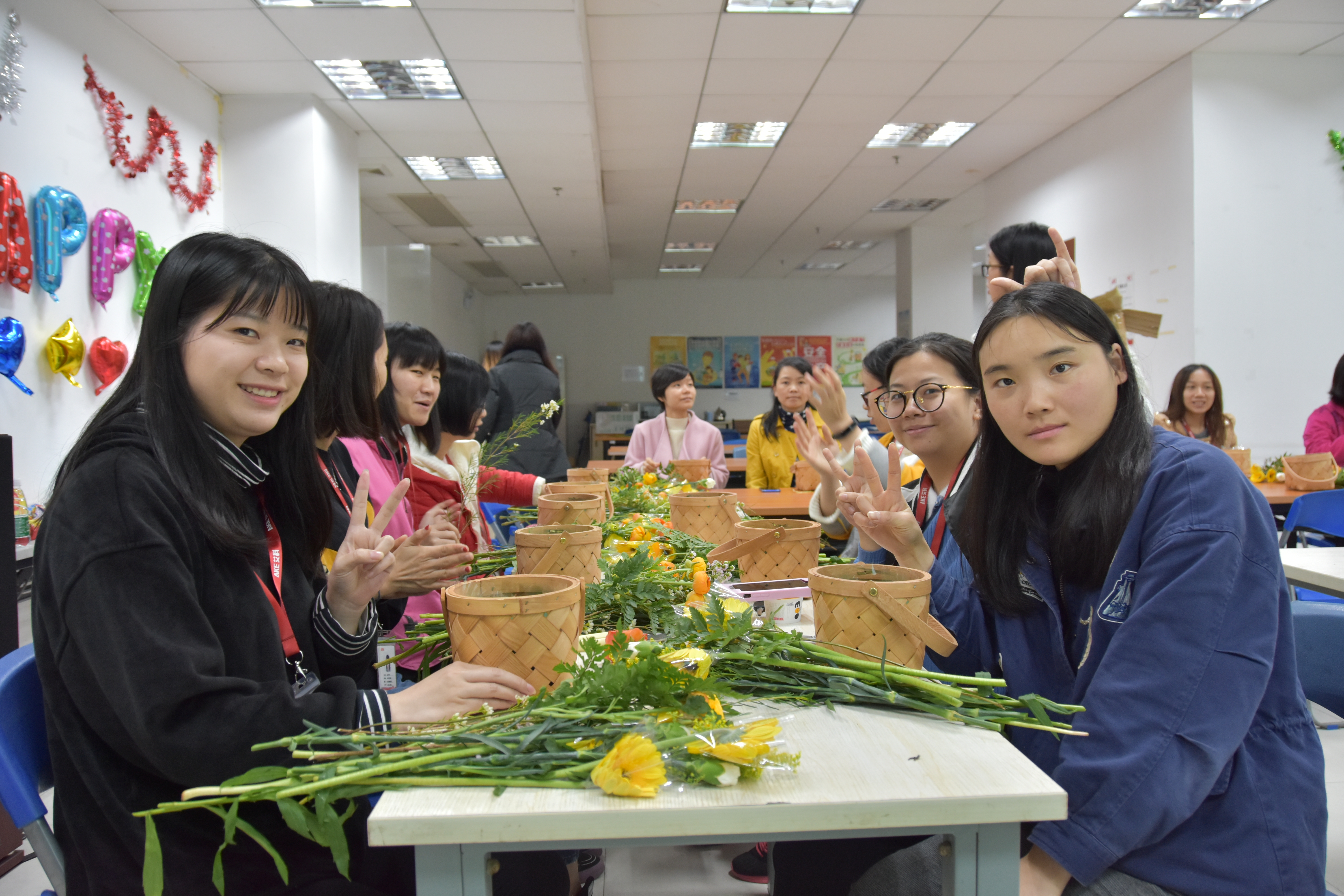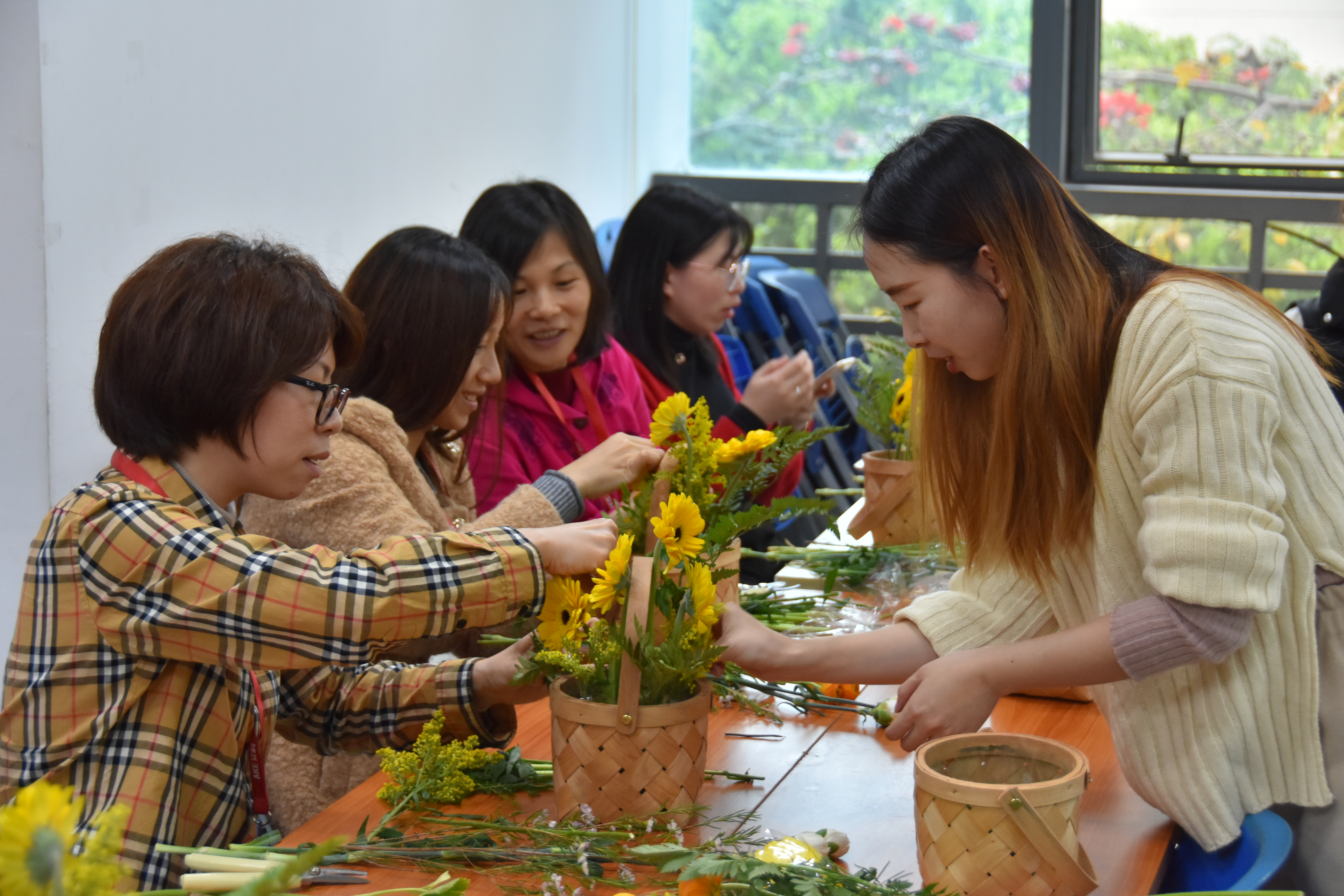 花艺老师手把手教学,女神们心灵手巧,很快就出师啦~