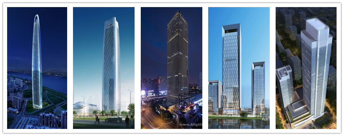 武汉绿地中心、长沙富兴世界金融中心、重庆俊豪icfc、郑州楷林国际广场、长沙运达中央广场等