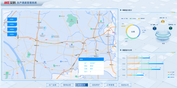 系统“数据 地图 业务”为中心,实现从水源、水厂、管网到用户的全过程监控,以更加“智慧”的方式辅助水务公司进行管理和运维,保证可靠供水,降低产销差,提升运营管控能力,实现经济效益和社会效益的增长。系统将生产管理,管网生产管理、管网运维、服务营销各环节的繁杂业务和多元异构数据进行集成,结合空间分析、数据挖掘、商业智能等技术手段,在海量庞杂的数据资源中挖掘各类有价值的信息,并采用gis可视化技术进行动态展现,为企业日常运营、服务营销、综合管理、应急处置等提供辅助决策工具。
