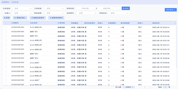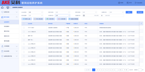 基于管网gis,以工单管理为核心,对巡检上报、任务受理、居民报修、热线上报、开关阀操作等管网维修养护事件进行统一管理。