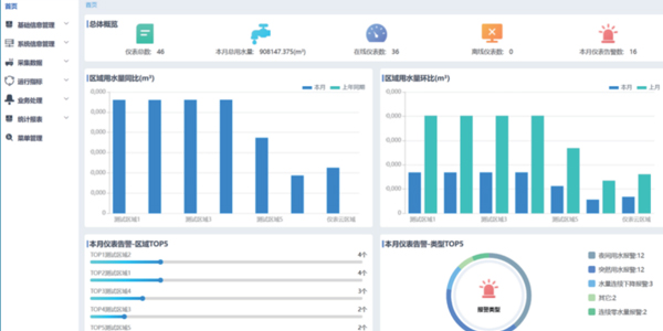 艾科户表集抄管理系统可对不同厂家的远传水表进行不同维度的统计,包括不同厂家不同型号水表的数量、在线情况、水表告警情况等信息,远程采集水表数据,可查询、生成各种水量数据报表。